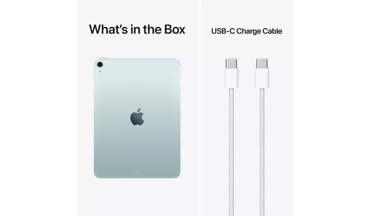 - In the box: iPad Air, USB-C Charge Cable (1 metre).